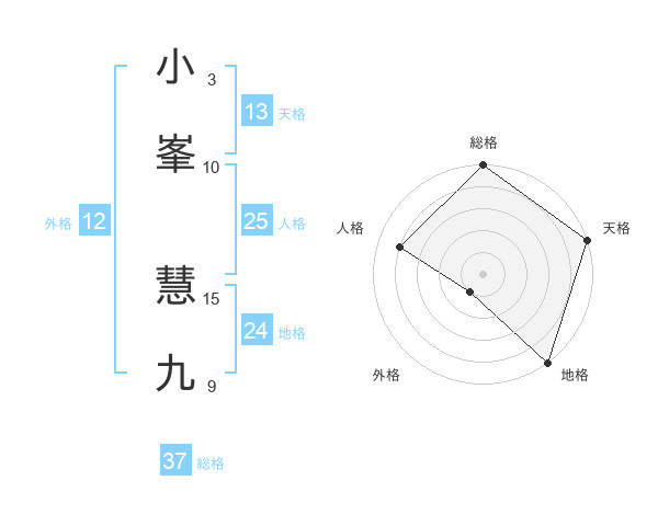 小峯 慧九さんの総格は37画の5点!
