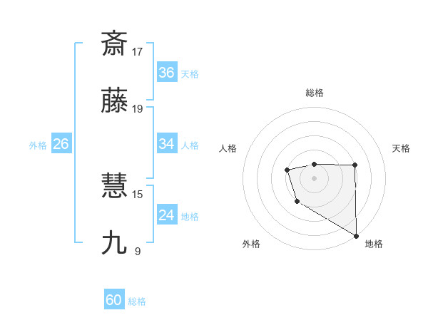 斎藤 慧九さんを姓名の画数から五運を鑑定