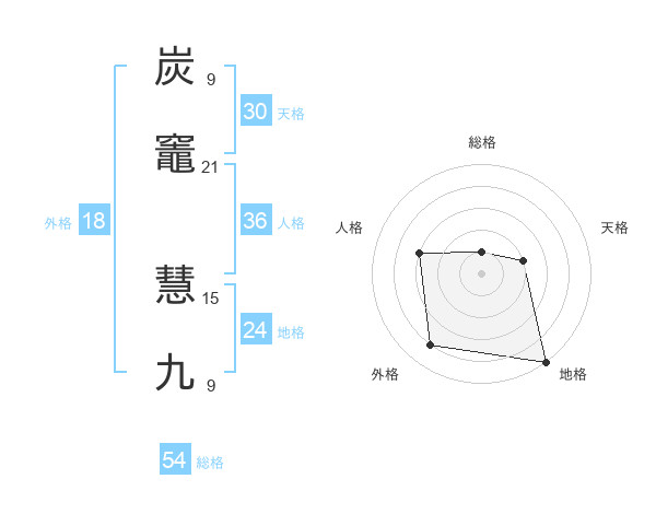 炭竈 慧九さんの総格は54画の1点!