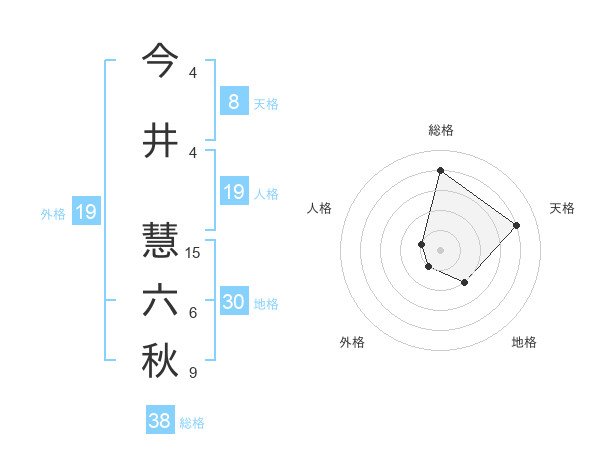 今井 慧六秋さんの総格は38画の4点!