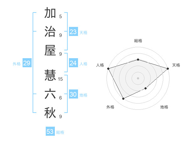 加治屋 慧六秋さんの天格は23画の5点!