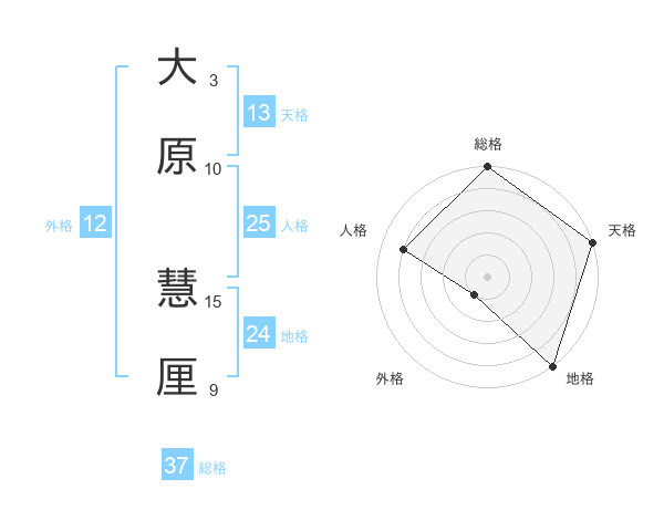 大原 慧厘さんの総格は37画の5点!