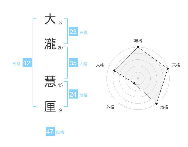 大瀧 慧厘さんを姓名の画数から五運を鑑定