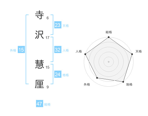 寺沢 慧厘さんを姓名の画数から五運を鑑定