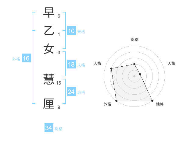 早乙女 慧厘さんを姓名の画数から五運を鑑定