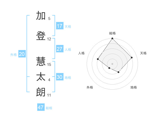 加登 慧太朗さんを姓名の画数から五運を鑑定