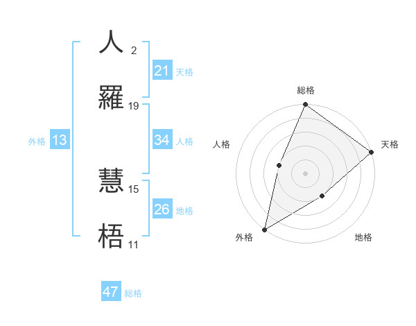 人羅 慧梧さんを姓名の画数から五運を鑑定