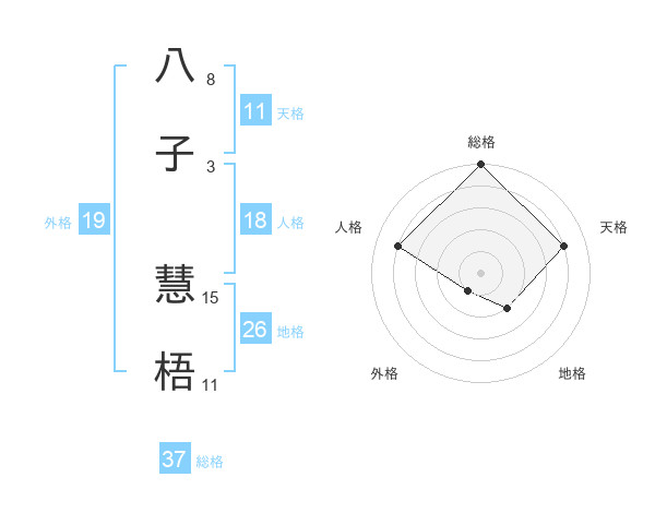 八子 慧梧さんの総格は37画の5点!