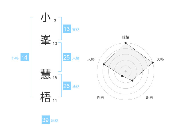 小峯 慧梧さんを姓名の画数から五運を鑑定