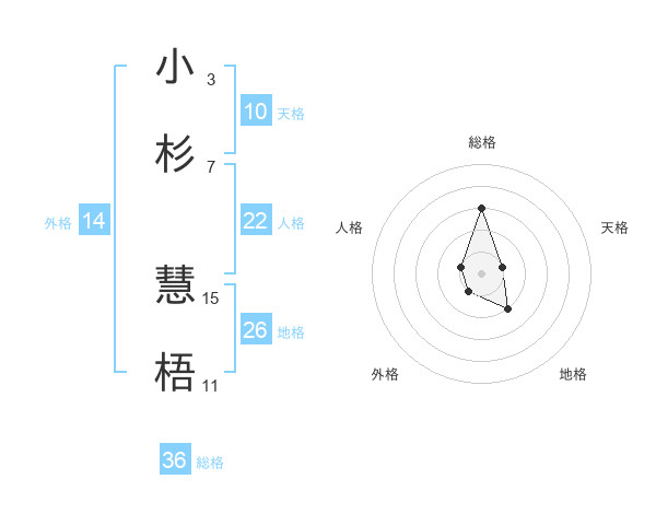 小杉 慧梧さんの総格は36画の3点!