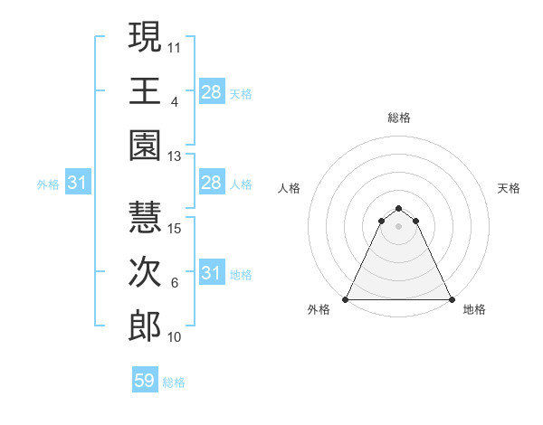 現王園 慧次郎さんを姓名の画数から五運を鑑定