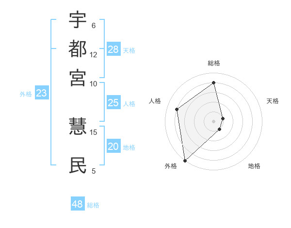 宇都宮 慧民さんを姓名の画数から五運を鑑定