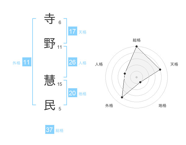 寺野 慧民さんの総格は37画の5点!