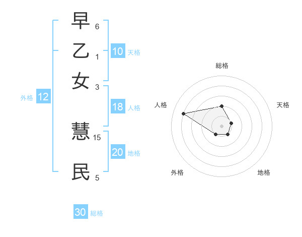 早乙女 慧民さんを姓名の画数から五運を鑑定
