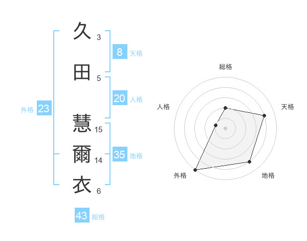 久田 慧爾衣さんを姓名の画数から五運を鑑定
