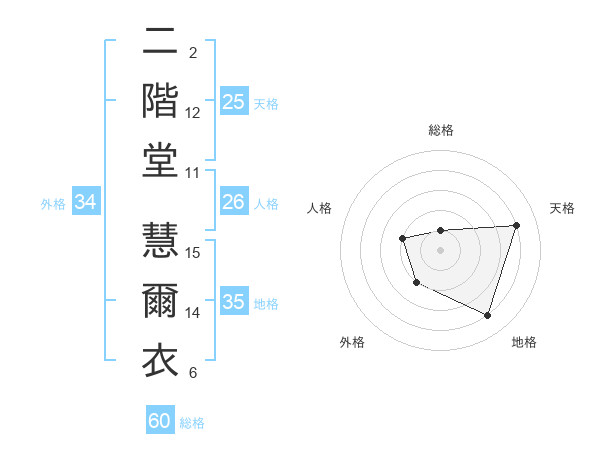 二階堂 慧爾衣さんを姓名の画数から五運を鑑定