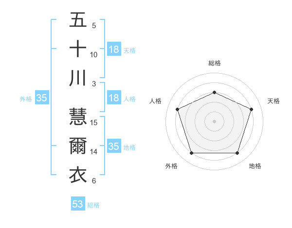 五十川 慧爾衣さんの総格は53画の3点!