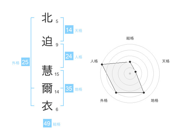 北迫 慧爾衣さんの総格は49画の2点!