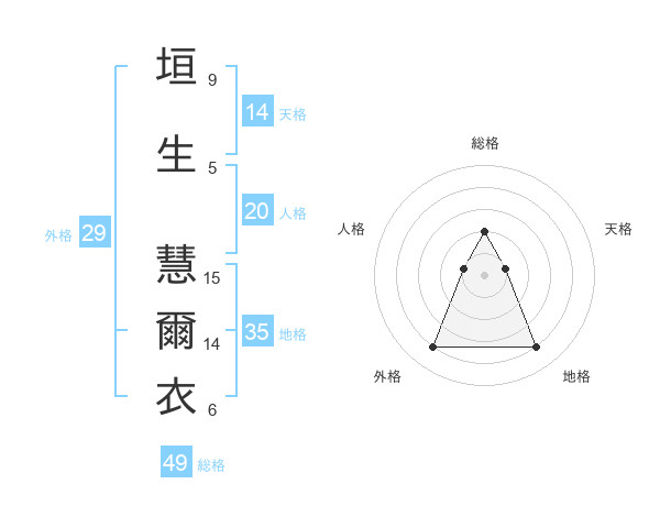 垣生 慧爾衣さんを姓名の画数から五運を鑑定