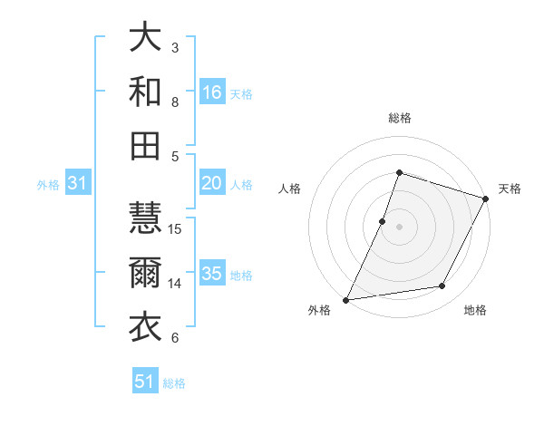 大和田 慧爾衣さんを姓名の画数から五運を鑑定
