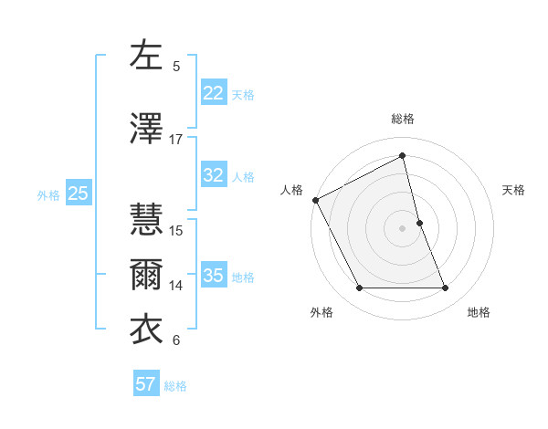 左澤 慧爾衣さんを姓名の画数から五運を鑑定
