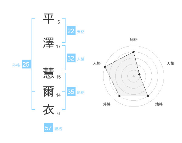 平澤 慧爾衣さんを姓名の画数から五運を鑑定