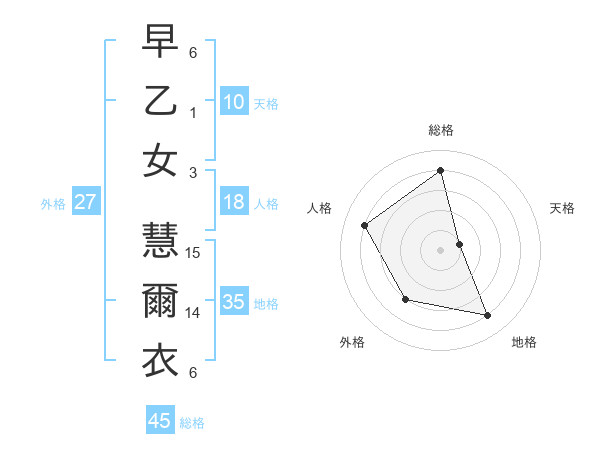 早乙女 慧爾衣さんを姓名の画数から五運を鑑定