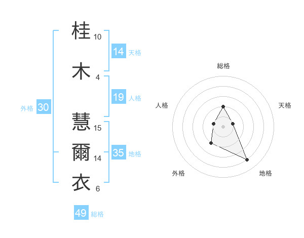 桂木 慧爾衣さんの総格は49画の2点!
