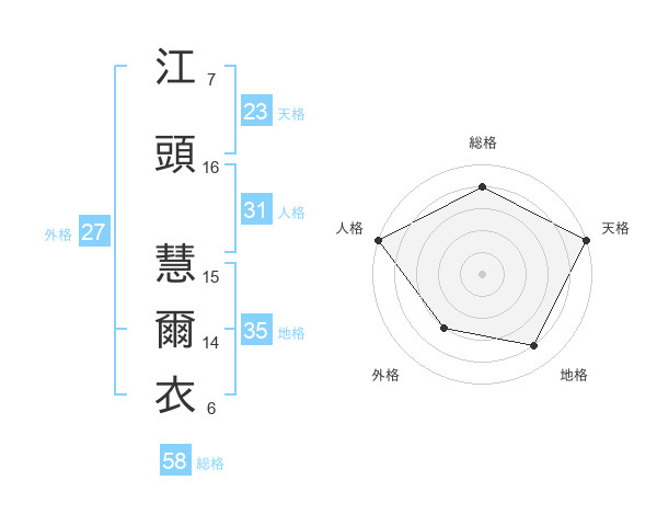江頭 慧爾衣さんを姓名の画数から五運を鑑定