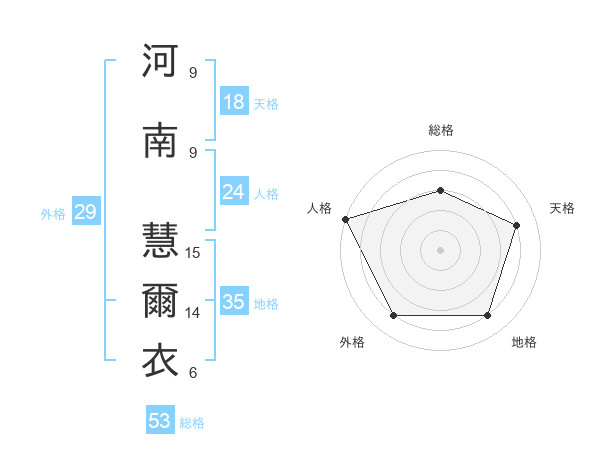 河南 慧爾衣さんを姓名の画数から五運を鑑定
