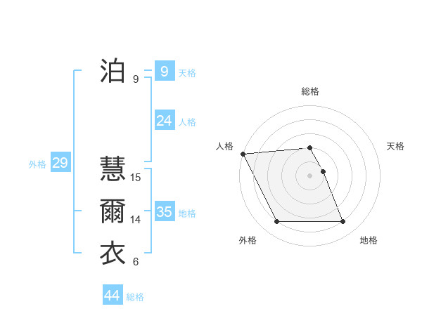 泊 慧爾衣さんの総格は44画の2点!