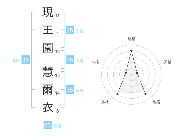 現王園 慧爾衣さんを姓名の画数から五運を鑑定