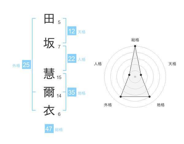 田坂 慧爾衣さんを姓名の画数から五運を鑑定