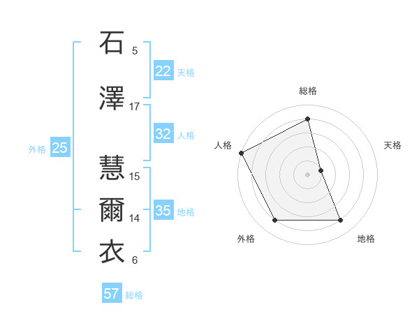 石澤 慧爾衣さんを姓名の画数から五運を鑑定