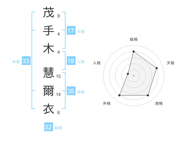 茂手木 慧爾衣さんを姓名の画数から五運を鑑定