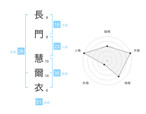 長門 慧爾衣さんを姓名の画数から五運を鑑定