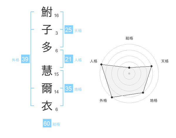 鮒子多 慧爾衣さんの外格は39画の5点!