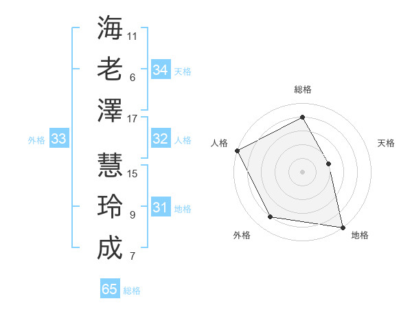 海老澤 慧玲成さんの総格は65画の4点!