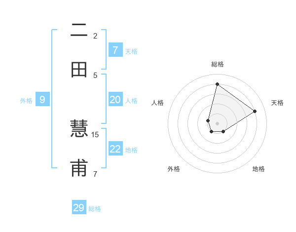 二田 慧甫さんを姓名の画数から五運を鑑定