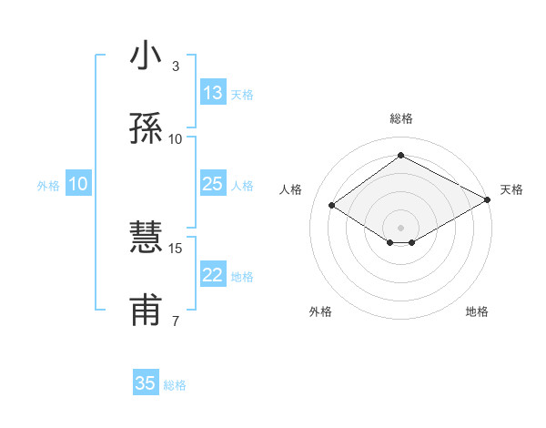 小孫 慧甫さんの総格は35画の4点!