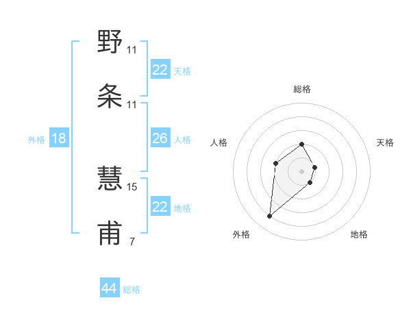 野条 慧甫さんの総格は44画の2点!