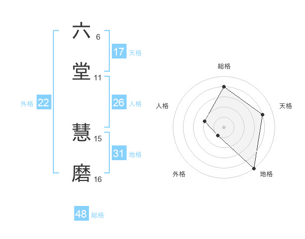 六堂 慧磨さんを姓名の画数から五運を鑑定