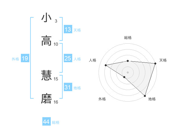 小高 慧磨さんの天格は13画の5点!