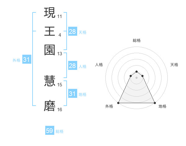 現王園 慧磨さんを姓名の画数から五運を鑑定