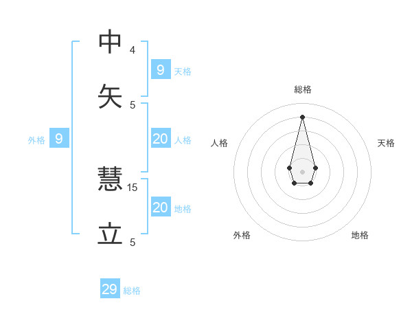 中矢 慧立さんの総格は29画の4点!