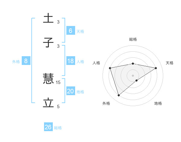 土子 慧立さんの総格は26画の2点!