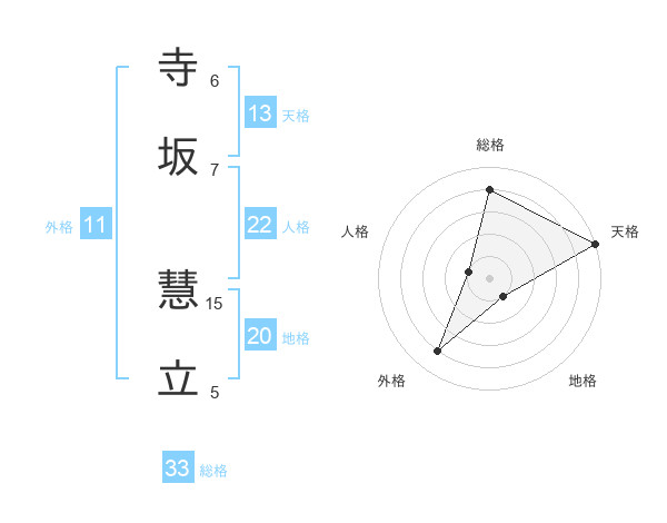 寺坂 慧立さんの天格は13画の5点!