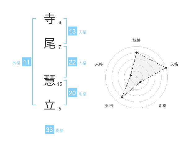 寺尾 慧立さんを姓名の画数から五運を鑑定