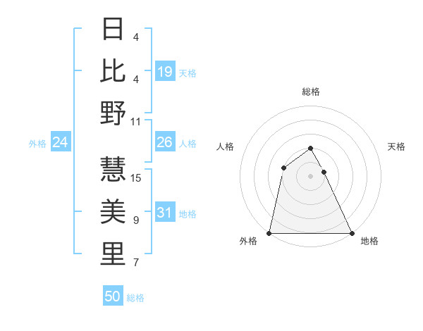 日比野 慧美里さんを姓名の画数から五運を鑑定
