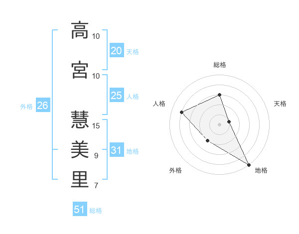 高宮 慧美里さんを姓名の画数から五運を鑑定